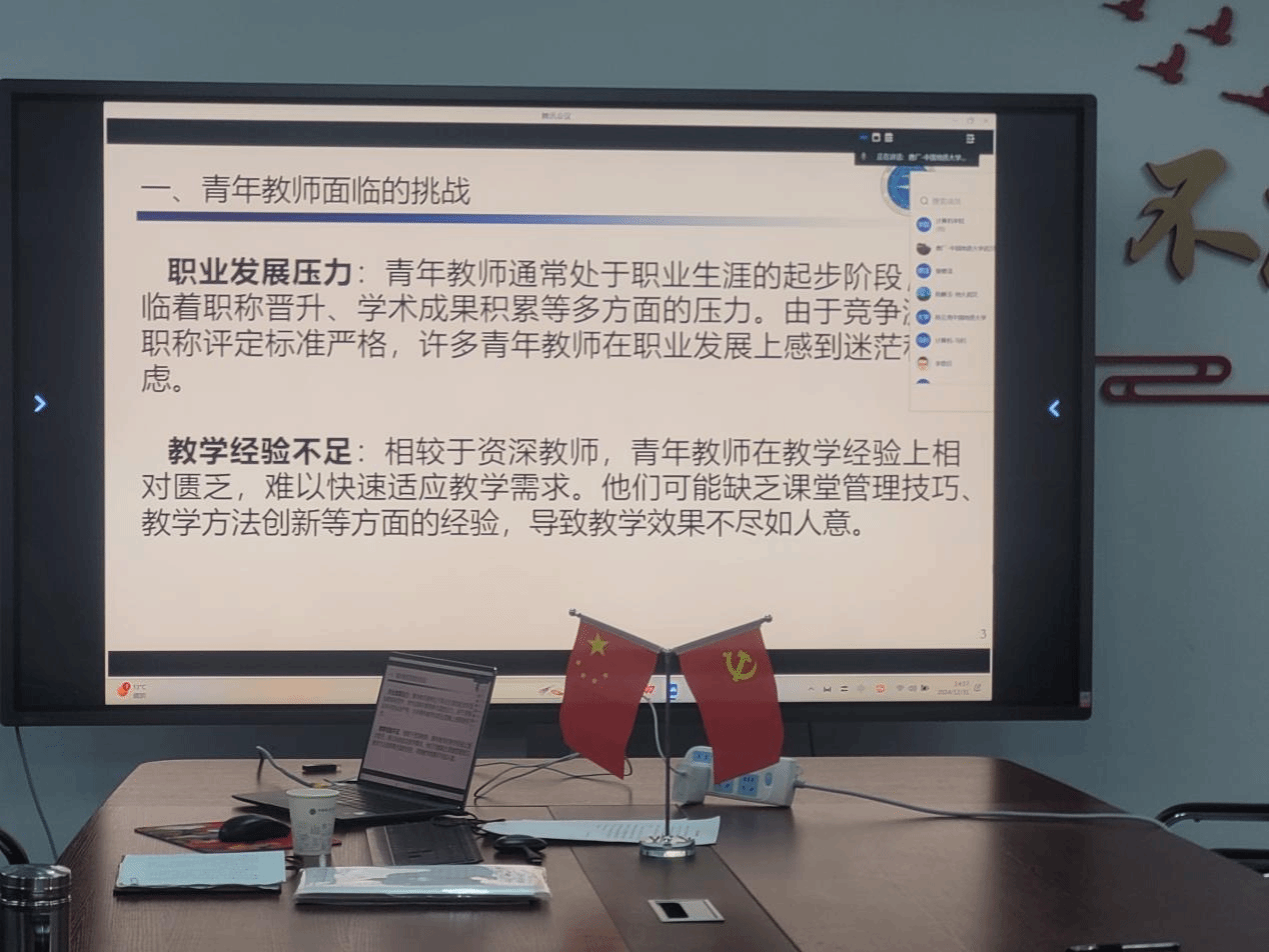 党委委员唐厂以“青年教师的挑战与机会”为题,分析了青年教师面临的挑战与机遇,并提出工作建议。