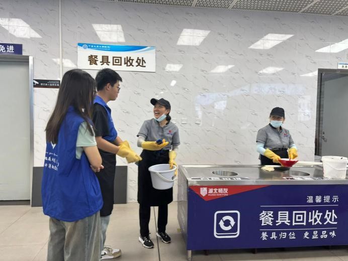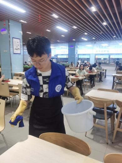 在本次食堂日常工作志愿活动中,同学们协助工作人员进行分餐打菜及餐后清洁等工作,全面了解食堂高效有序的运行流程,深入体验了食堂后勤保障人员的辛勤劳动。通过亲身体验,同学们体会到勤俭节约和食品安全的重要性,增强了服务意识和自身动手能力,更加学会珍惜他人劳动成果。