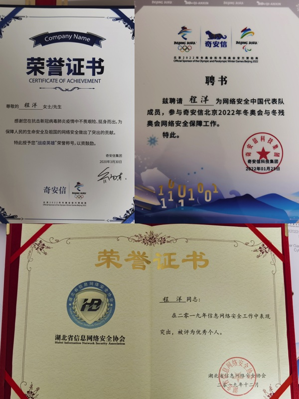 编者按:他曾把自己的“论文”写在火神山医院和北京冬奥会、冬残奥会的网络安全维护工作中,展现了新时期地大计科人的风采。他就是2015年从我院信息安全专业毕业的程洋校友,师从宋军老师,现就职于奇安信科技集团股份有限公司,负责湖北区域技术组工作,从事信息安全、网络攻防相关研究。