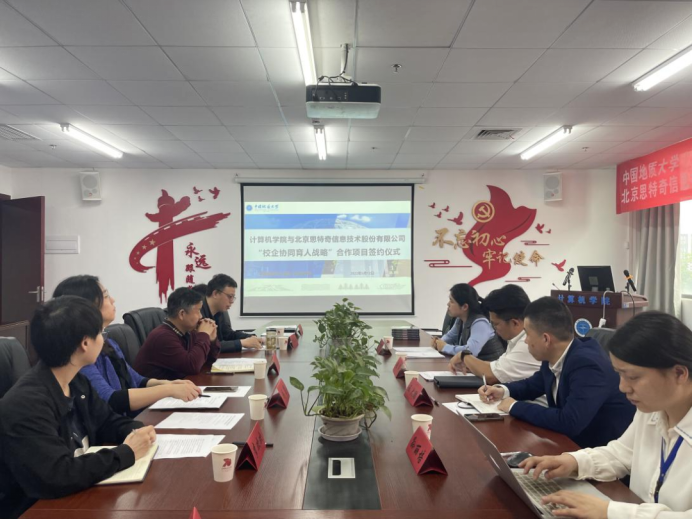 (通讯员:柴文岳)5月12日,我院与北京思特奇信息技术股份有限公司成功举办“校企协同育人战略”合作项目签约仪式。北京思特奇信息技术股份有限公司湖北分支总经理张伟、产品顾问王大鹏、华中区人力主管崔娇娇、湖北人事行政专员孙丽培,计算机学院党委书记李国昌、党委副书记傅苑、副院长胡成玉、副院长陈云亮、团委书记李欢欢、2019级辅导员闫维蓉出席签约仪式,李欢欢担任主持。