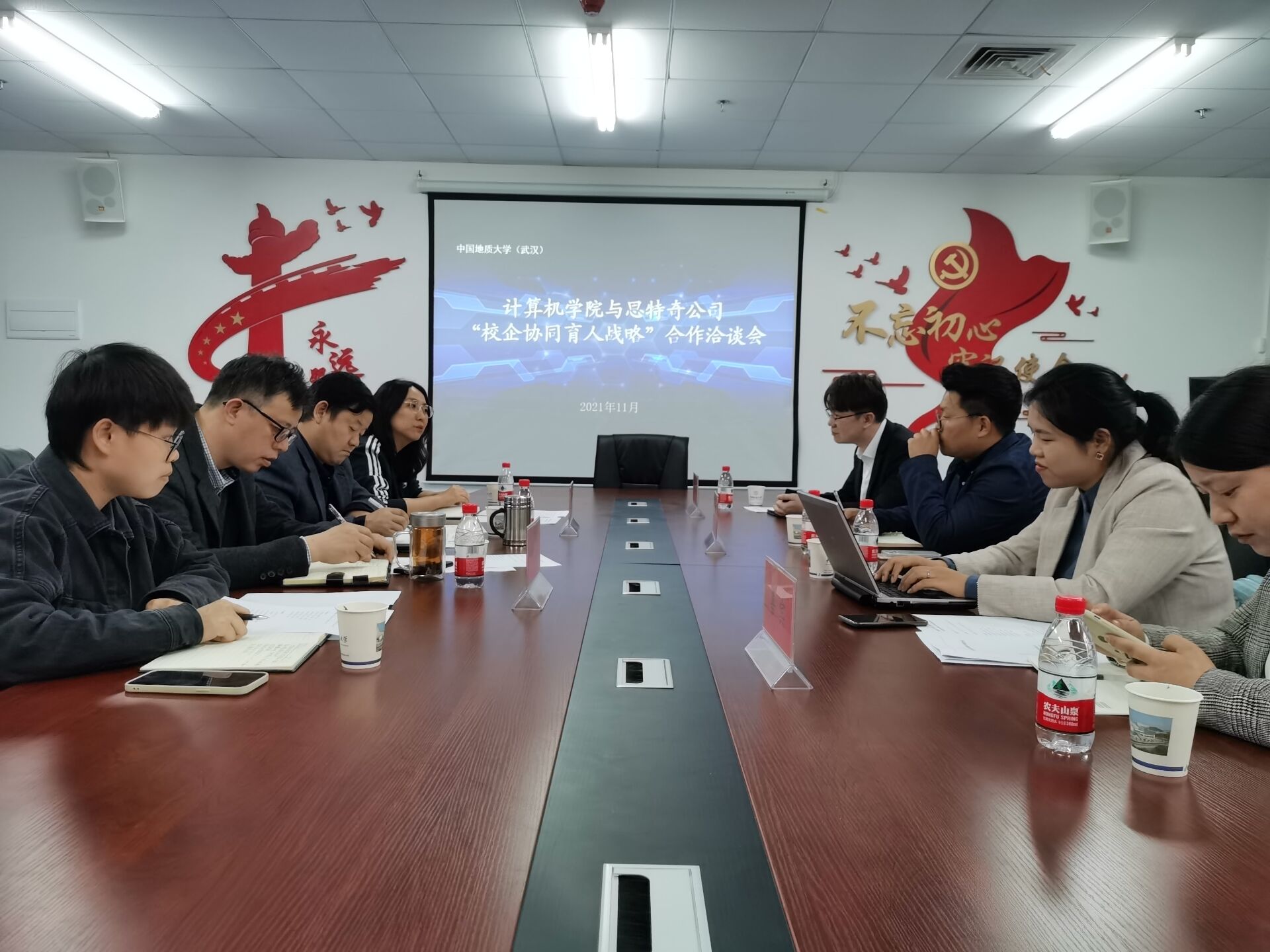 (通讯员:汪帮传)加强校企之间的合作交流,寻找产教融合新思路,提高教学质量,11月4日下午,计算机学院与思特奇公司“校企协同育人战略”合作项目洽谈会在计科楼309会议室隆重举行。思特奇集团产品线总经理项智、华中区分公司总经理张伟、华中区人力主管崔娇娇、湖北人力负责人孙丽培,学院党委书记李国昌、党委副书记傅苑以及副院长胡成玉参加了此次会议,会议由学院团委书记李欢欢主持。