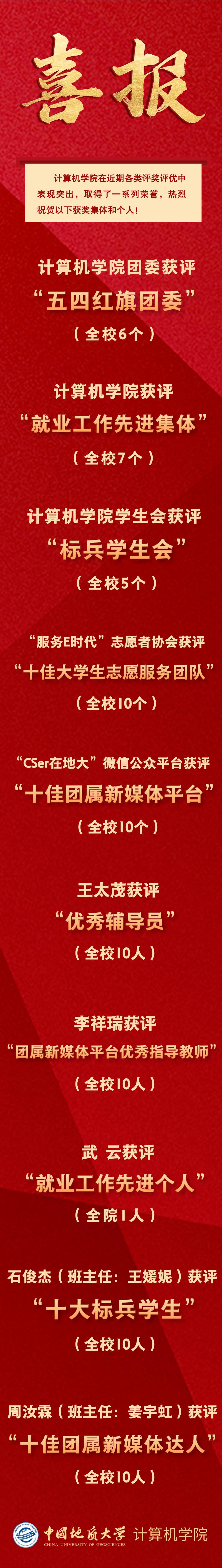 喜报 | 计算机学院在近期各类评奖评优中荣获佳绩