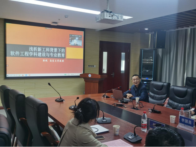 2023年3月25日,软件工程学科发展与建设系列研讨会(第4期)——软件工程学科人才培养暨优秀青年学者论坛在计算机学院323会议室以线下+线上方式举行。教育部软件工程专业教学指导委员会副主任、南京大学软件学院骆斌教授,复旦大学计算机学院软件工程实验室黄凯锋博士后,武汉大学计算机学院讲师甘庭博士,南京大学软件学院智能软件工程实验室郝蕊博士,武汉大学计算机学院应时教授,学院党委书记李国昌,软件工程系系主任李圣文、尚建嘎教授等教师和多名研究生参加论坛。论坛围绕软件工程学科人才培养、开源软件、程序生成及软件测试中相关话题展开报告和探讨。论坛由李国昌书记和应时教授分阶段共同主持。