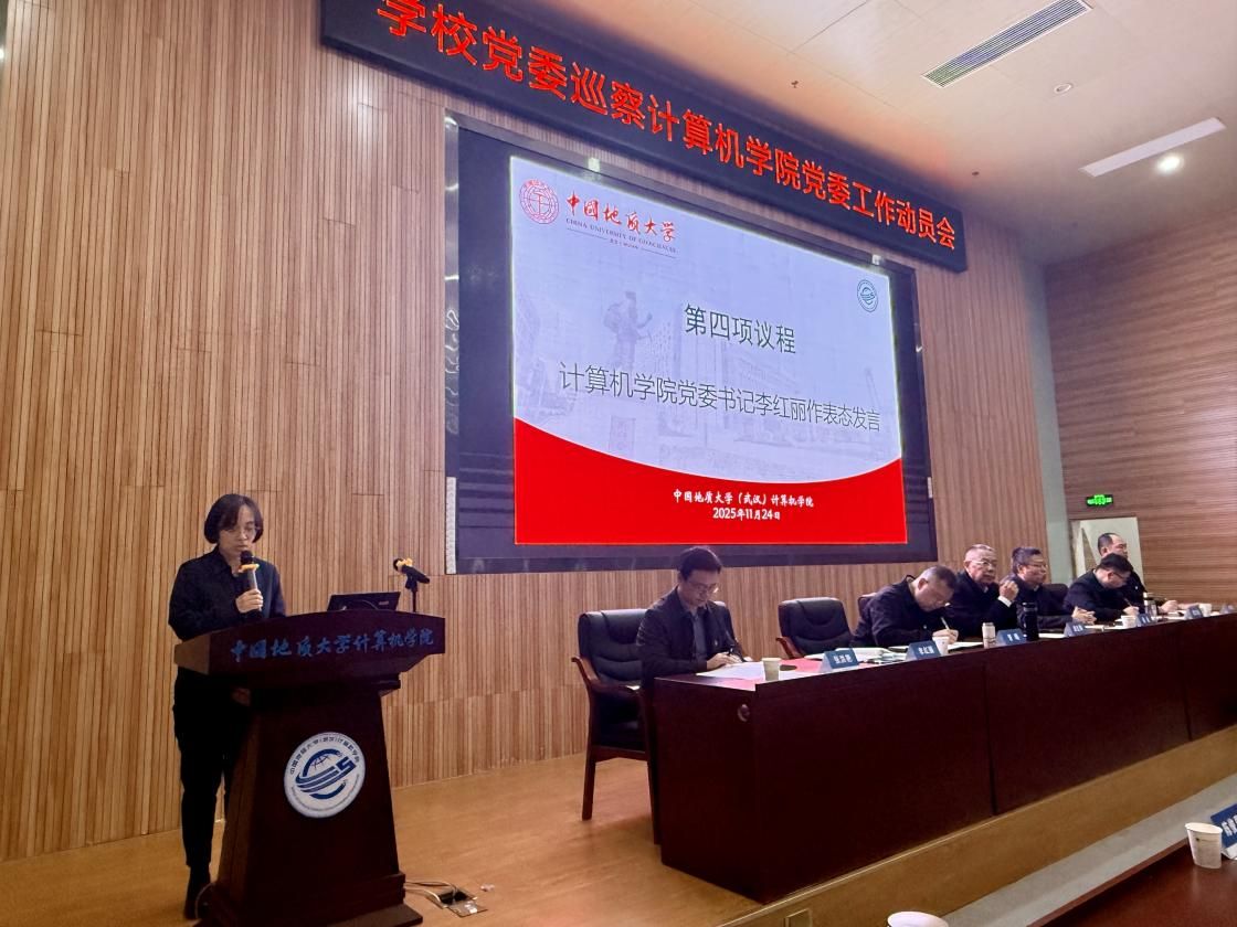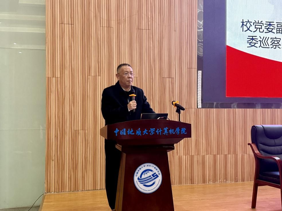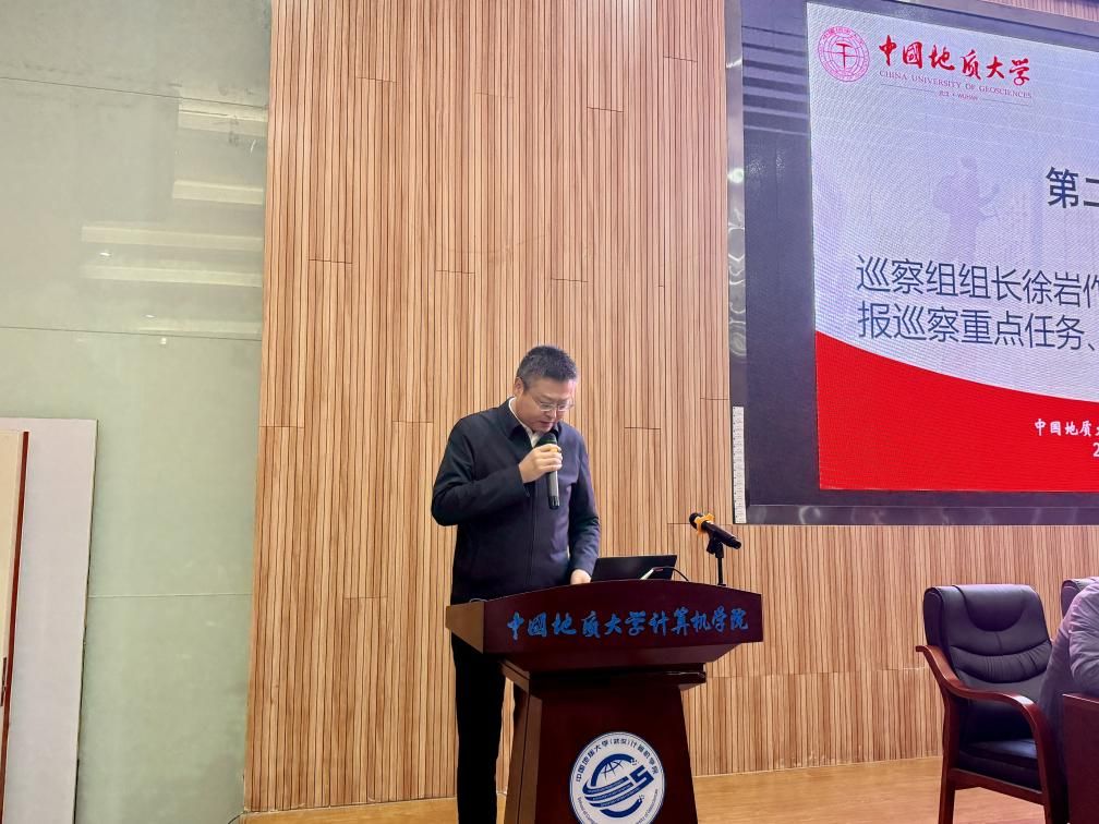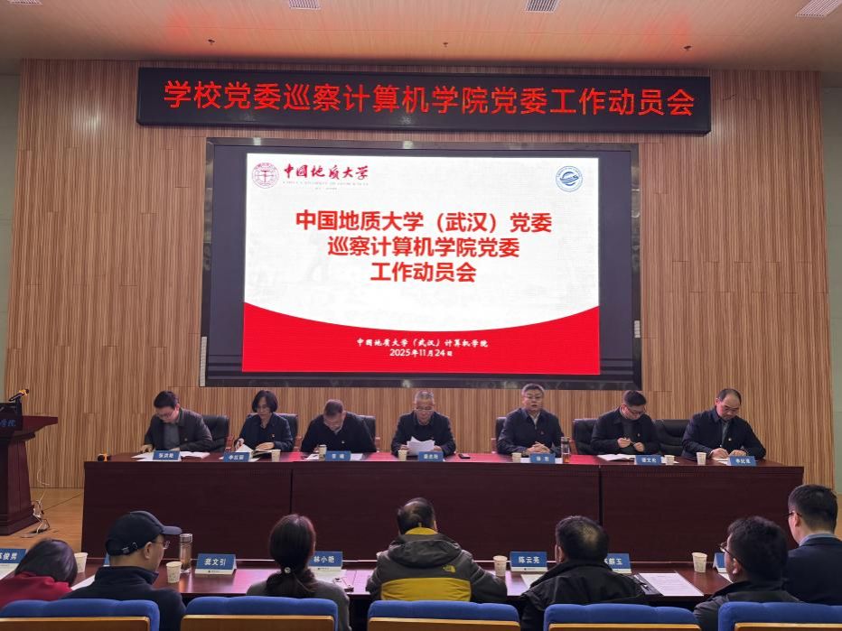 根据中国地质大学(武汉)第三轮巡察工作安排,2025年11月24日上午,校党委巡察计算机学院(软件学院)党委工作动员会在学院126报告厅召开。校党委副书记、纪委书记唐忠阳,校党委巡察办主任晋曦,巡察组组长、公共管理学院党委书记徐岩,副组长、资源学院党委副书记谭文伦,副组长、经济管理学院党委副书记李纪亮,组员邓锡琴、张川、陈俊男、张弛,学院全体教职工、离退休老同志代表、学生代表等120余人参加会议。院长张洪艳主持会议。
