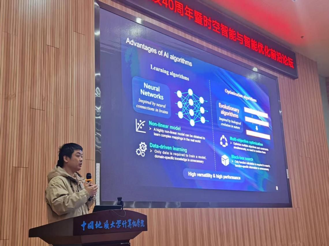下午,中国地质大学(武汉)计算机学院卢超副教授简要回顾上午报告精华,对下午各位专家的到来表示欢迎,并期待大家以“时空智能与智能优化”为纽带,碰撞思想、凝聚共识,为学院学科交叉与特色发展贡献新思路。