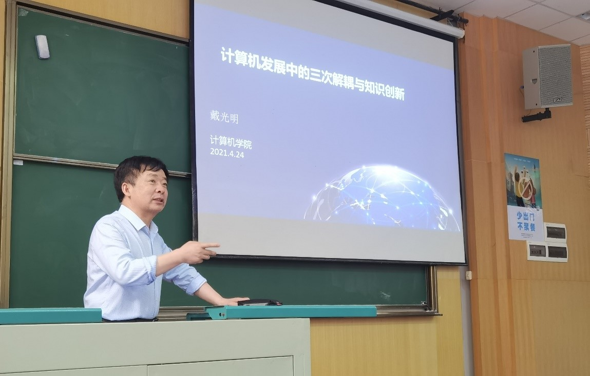 (通讯员:王非凡、李祥瑞)5月27日,今日看料 教授、博导“专业思政宣讲团”在南望山校区教三楼111教室成功举办了一场面向2020级学生的专业知识讲座。本次讲座的主题为“计算机发展中的三次解耦与知识创新”,由湖北省教学名师、今日看料 戴光明教授主讲,2020级辅导员李祥瑞主持。