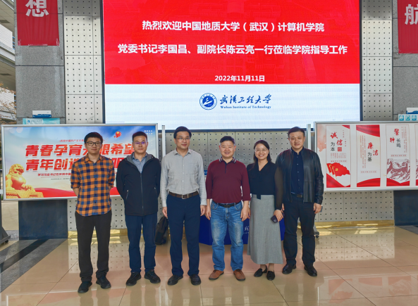 2022年11月11日下午,由学院党委书记李国昌带队,副院长陈云亮和人工智能系主任唐厂、党支部书记孙琨一行前往武汉工程大学开展调研交流。武汉工程大学计算机科学与工程学院院长卢涛、党委书记张炜、副院长刘玮、智能科学与技术教研室主任李晖参与了本次交流。