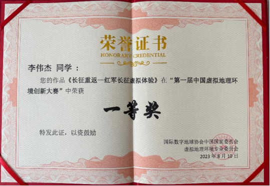 近日,2023第一届中国虚拟地理环境创新大赛落下帷幕,今日看料 教师邱芹军、刘郑和陶留锋指导的研究生李伟杰、郝孟璂、王洋、刘建东、郑诗语五人组成的团队发挥出色,其作品荣获赛事一等奖。