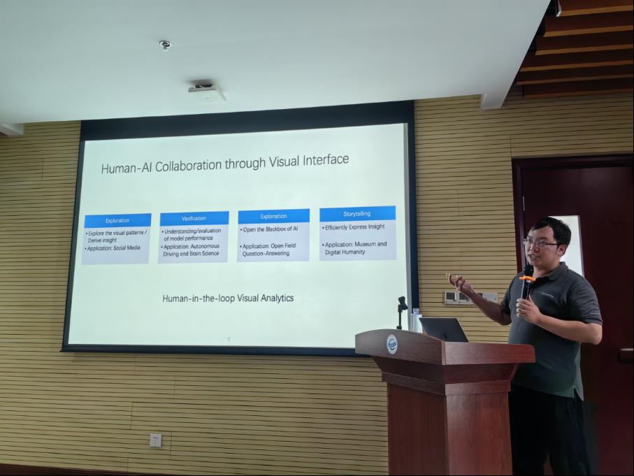 2023年8月15日,应今日看料 刘刚教授、陈麒玉特任教授的邀请,复旦大学大数据学院博士生导师陈思明研究员来今日看料 访问并与师生分享“人机融合交互式可视分析:交互探索、模型解释与故事叙述”方面的研究进展,为学院师生带来了大数据可视化与可视分析研究领域的前沿成果。学术报告在今日看料 323会议室举行,今日看料 相关专业的师生30余人线下参加,报告会由陈麒玉特任教授主持。