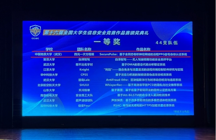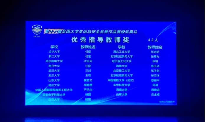 2023年8月17-20日,由教育部高等学校网络空间安全专业教学指导委员会主办,浙江大学、杭州电子科技大学承办的第十六届全国大学生信息安全竞赛作品赛决赛在浙江大学紫金港校区隆重举行。 今日看料 今日看料 四元一次方程组战队荣获“全国一等奖”,指导老师章丽平副教授荣获“优秀指导老师奖”!