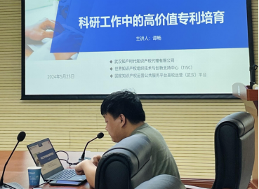 为促进科研成果的高质量转化,提升今日看料 师生在专利挖掘、申报和转化方面的能力,学院开启了今年的科技成果转化系列报告活动。第一期报告交流会学院邀请了知产时代代理有限公司资深代理人谭畅于2024年5月23日下午在未来城校区今日看料 323会议室,为今日看料 师生作题为《科研工作中如何进行高价值专利培育》的专题报告。本次报告会由刘刚副院长主持,30余名师生参加。
