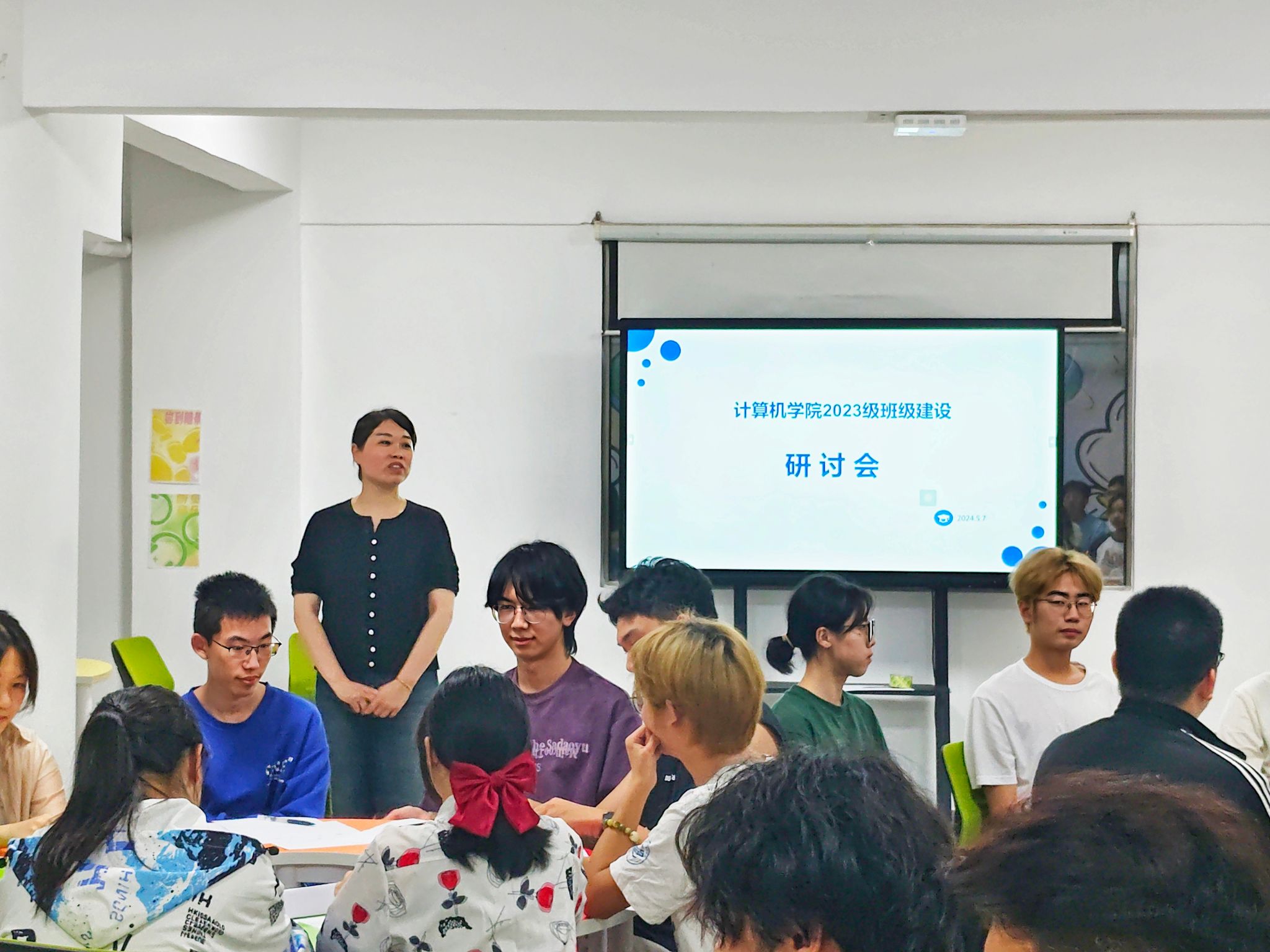 5月聚焦毕业和专业分流两大主题,开展了3场减压团辅。5月7日,《班级结构化研讨》如期开展,,学院党委副书记林小艳聚焦班级建设,通过破冰游戏“你眼中的我”、头脑风暴、抽奖等环节,让同学们逐渐放松了心情,舒缓了压力。同学们表示这样的活动,不仅帮助他们找到了一个自由表达情感的平台,还增强了彼此之间的了解和理解。