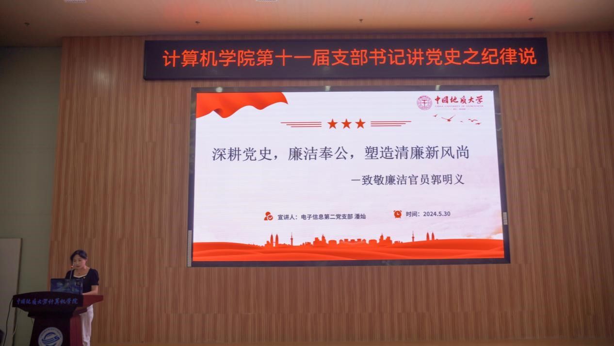 活动在雄壮的国歌声中拉开帷幕。学生党支部书记率先登场。电子信息第三党支部朱国强以刘邓大军的严明军纪为例,强调了纪律在军队建设中的重要作用。本科生信安党支部郭鹏顺则从新民主主义革命时期的党纪建设出发,强调了坚守初心、严明纪律的意义。本科生空信党支部延笑宇等多名成员以“党的纪律:烈烈清风”为题的诗歌朗诵,声情并茂地展现出对党廉政建设的歌颂。本科生计科第一党支部王诗敏则以延安廉政的故事为蓝本,深入剖析了党在推动廉政反腐方面的必要性和坚定决心。电子信息第二党支部潘灿通过讲述郭明义的故事,展现了廉洁奉公、无私奉献的崇高精神。电子信息第一党支部胡长浩深刻阐述了铁纪在长征这一伟大的历史事件中的关键作用。在今日看料 空间信息工程党支部与经济管理学院生态文明研究生样板党支部成员的精心编排下,以一场独具特色的话剧将现场气氛推向了高潮,生动诠释了“亲民爱民、艰苦奋斗、科学求实、迎难而上、无私奉献”的“焦裕禄精神”。