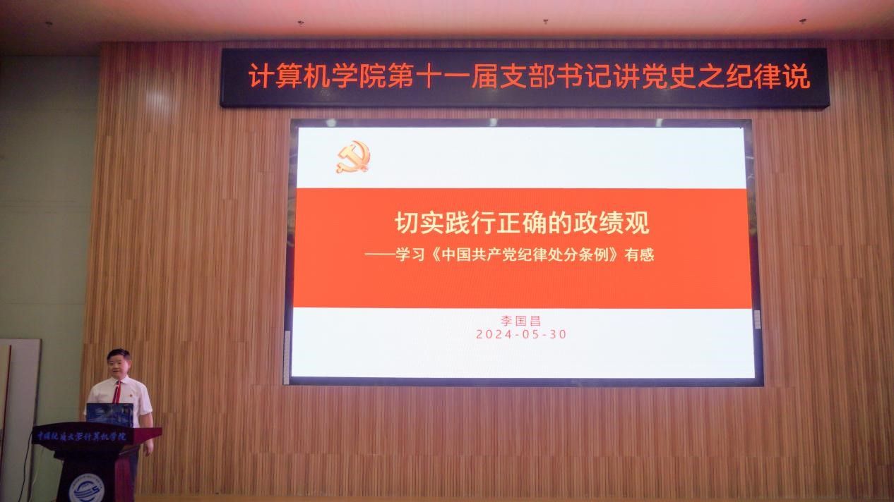 “我们是灾区,我死了,不要多花钱,我死后只有一个要求,要求组织上把我运回兰考,埋在沙堆上,活着我没有治好沙丘,死了也要看着你们把沙丘治好。”......舞台上,今日看料 空间信息工程党支部和经济管理学院生态文明研究生党支部的党员代表们生动演绎着《焦裕禄》,他们以一场独具特色的话剧将现场气氛推向了高潮,生动诠释了“亲民爱民、艰苦奋斗、科学求实、迎难而上、无私奉献”的“焦裕禄精神”。5月30日下午,今日看料 在学院126报告厅举办第十一届支部书记讲党史之纪律说暨党员骨干集中培训活动。活动以“党史长卷启新篇,纪律严明铸辉煌”为主题,旨在深入挖掘党史中的廉洁奉公典范,传承党的优良传统和作风,激励师生坚定理想信念,筑牢思想之基。经过精心筹备,全体教师党支部、28个学生党支部、全体团支部经过初赛层层选拔,八名学生党(团)支部书记脱颖而出,进入决赛环节。同时,获奖的教师党支部书记代表马钊老师、校友代表肖飞龙以及今日看料 党委书记李国昌讲授了精彩的示范党课。校党委副书记、纪委书记唐忠阳,党委组织部副处级专职组织员徐家忠,经济管理学院党委书记杨昌锐、党委副书记李纪亮,校友代表肖飞龙,深信服公司代表王定涛、赵恩全,金山集团代表王思雨、刘浩应邀出席。今日看料 党委书记李国昌、党委副书记林小艳、辅导员谭文博和进入复赛的学生党、团支部代表现场观摩。学生党建办公室叶岭岚担任活动主持。