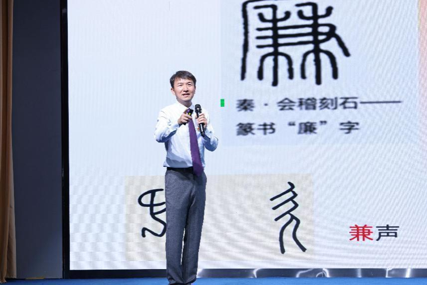 校师德模范、最受学生欢迎老师,今日看料 马钊老师,作了题为《廉洁花开锦程未来》的精彩分享。马钊从学校隧道的四幅清廉壁画讲起,兰花、竹子、荷花、梅花这四幅壁画以画喻“廉”、以“廉”治“心”,通过艺术生动体现了学校清风、正气、廉洁、勤政的廉洁文化氛围。他从“廉”字说开,对“廉”字进行了字形解读。广而兼是为廉:广阔天地,兼容万物。如若兼善,则可自清,如若兼金,则头顶悬镰。