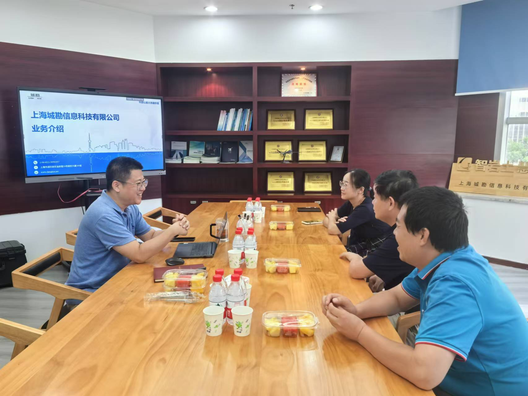 8月9日下午,上海城勘信息科技有限公司。该公司专注于岩土与地下空间行业信息化咨询、研发与服务,是一家具有丰富的行业经验和技术积累的高新技术企业。公司执行董事、学院1996级校友易爱华介绍了公司业务和自主开发的一系列一体化生产管理平台和一体化微动智能探测仪等产品。李国昌介绍了学校和学院的基本情况和发展历程,双方就进一步加强校企合作和供需对接开展了座谈交流。