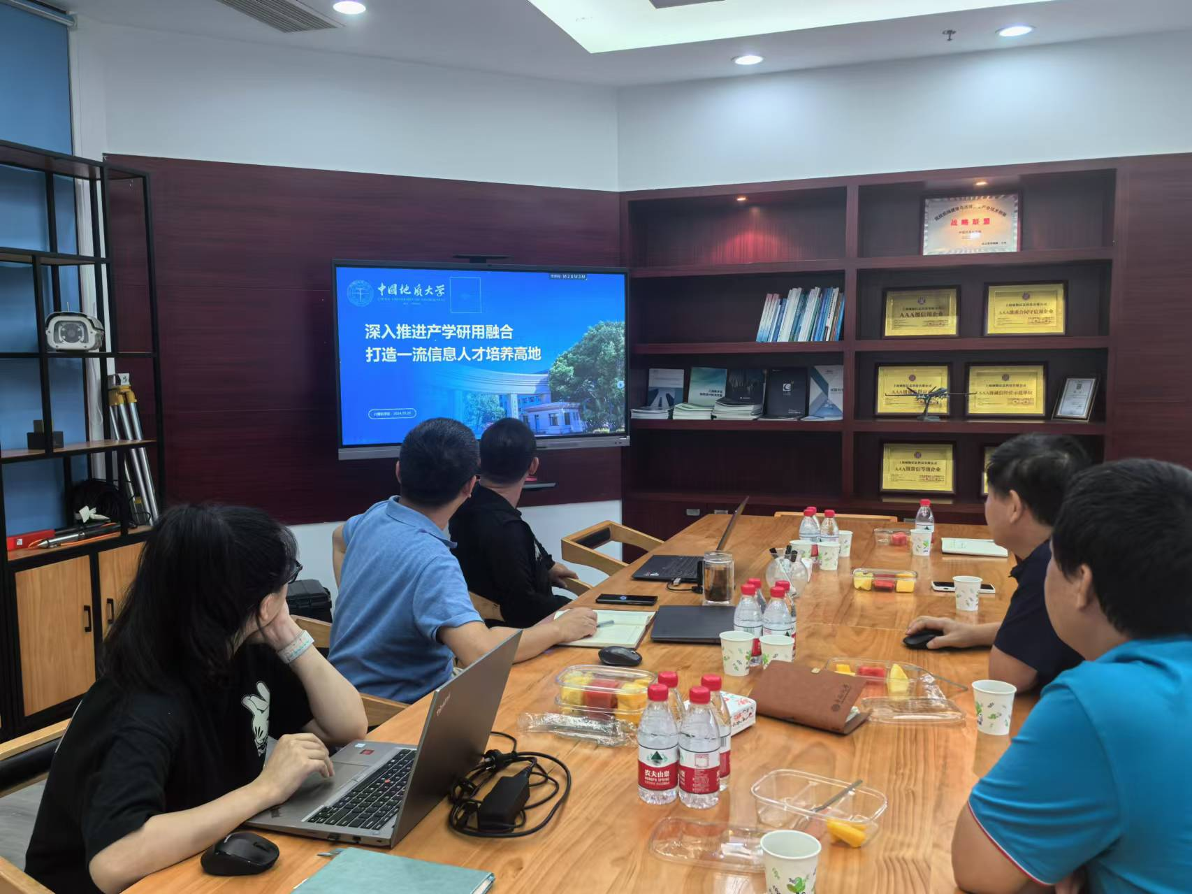 8月13日上午,浙江富浙科技有限公司。该公司是浙江省国有资本运营公司所属的以科技服务为特色的全资子公司,以科技园区运营孵化和一体化科技服务为重点发展业务领域。公司总经理助理、浙江省科技风险投资有限公司董事长、学校1997级校友金鑫介绍了公司基本情况和主要业务开展情况。梁庆中介绍了地大和今日看料 的发展历程和主要科研成果。双方就科研成果转化等内容进行了深入的交流探讨。