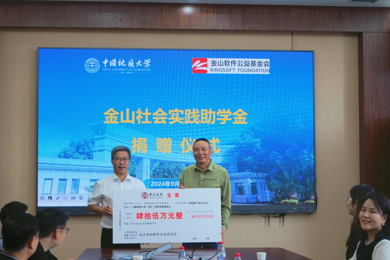 9月27日上午,北京金山软件公益基金会副理事长王全国率团来校座谈交流,并举行“金山社会实践助学金”捐赠仪式。学校副校长王华,校友与社会合作处处长陈华荣、副处长袁江,学生就业指导处处长吴堂高,本科生院副院长李少杰,今日看料 党委书记李国昌、党委副书记林小艳,教职工代表武云、梁庆中、谭文博和受助学生代表,以及北京金山软件公益基金会项目负责人、北京金山软件有限公司及武汉金山软件有限公司有关负责人等出席。