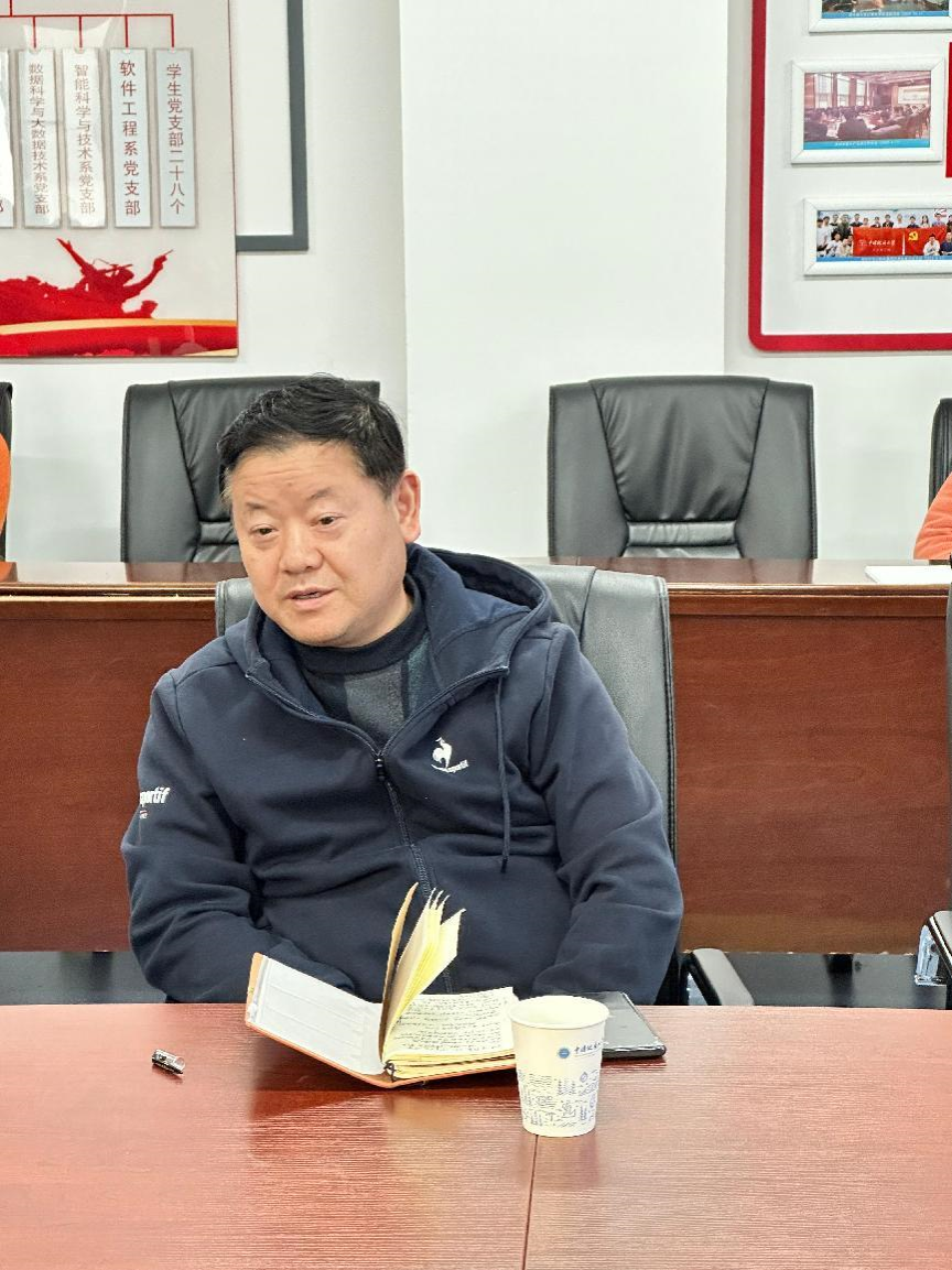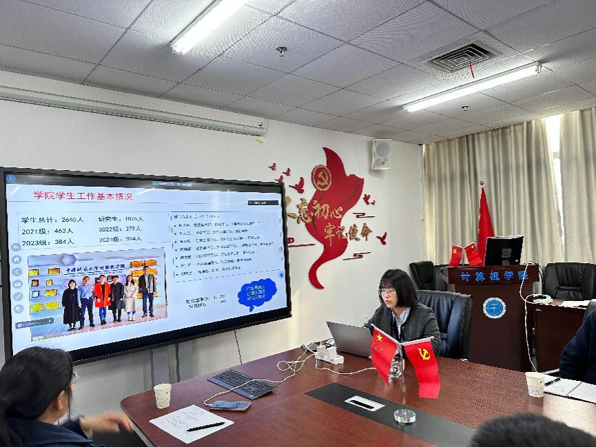 谭文博作就业工作汇报。他回顾了学院就业育人和校企合作取得的一系列成效,分析了学院近4年学生就业情况,并汇报了2025届毕业生目前的就业进展。他提醒老师们抓好促就业的时间节点,提前谋划就业工作,重点帮扶就业困难学生。