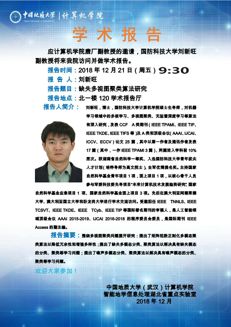 学术报告——国防科大刘新旺:缺失多视图聚类算法研究