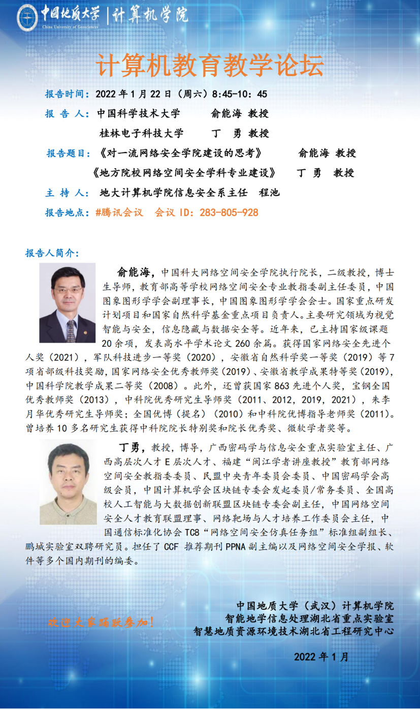 计算机教育教学论坛:中国科大俞能海教授、桂林电子科大丁勇教授讲座