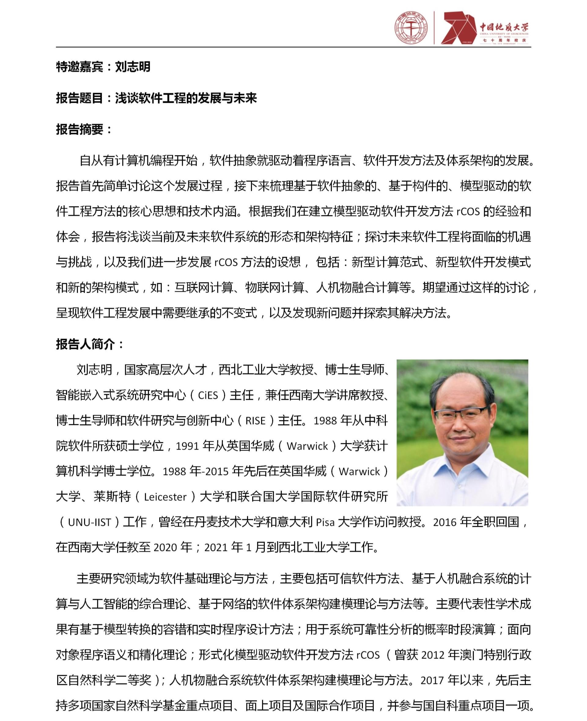中国地质大学(武汉)70周年校庆学术活动之计算机学院软件工程学科发展与建设研讨会(第2期)