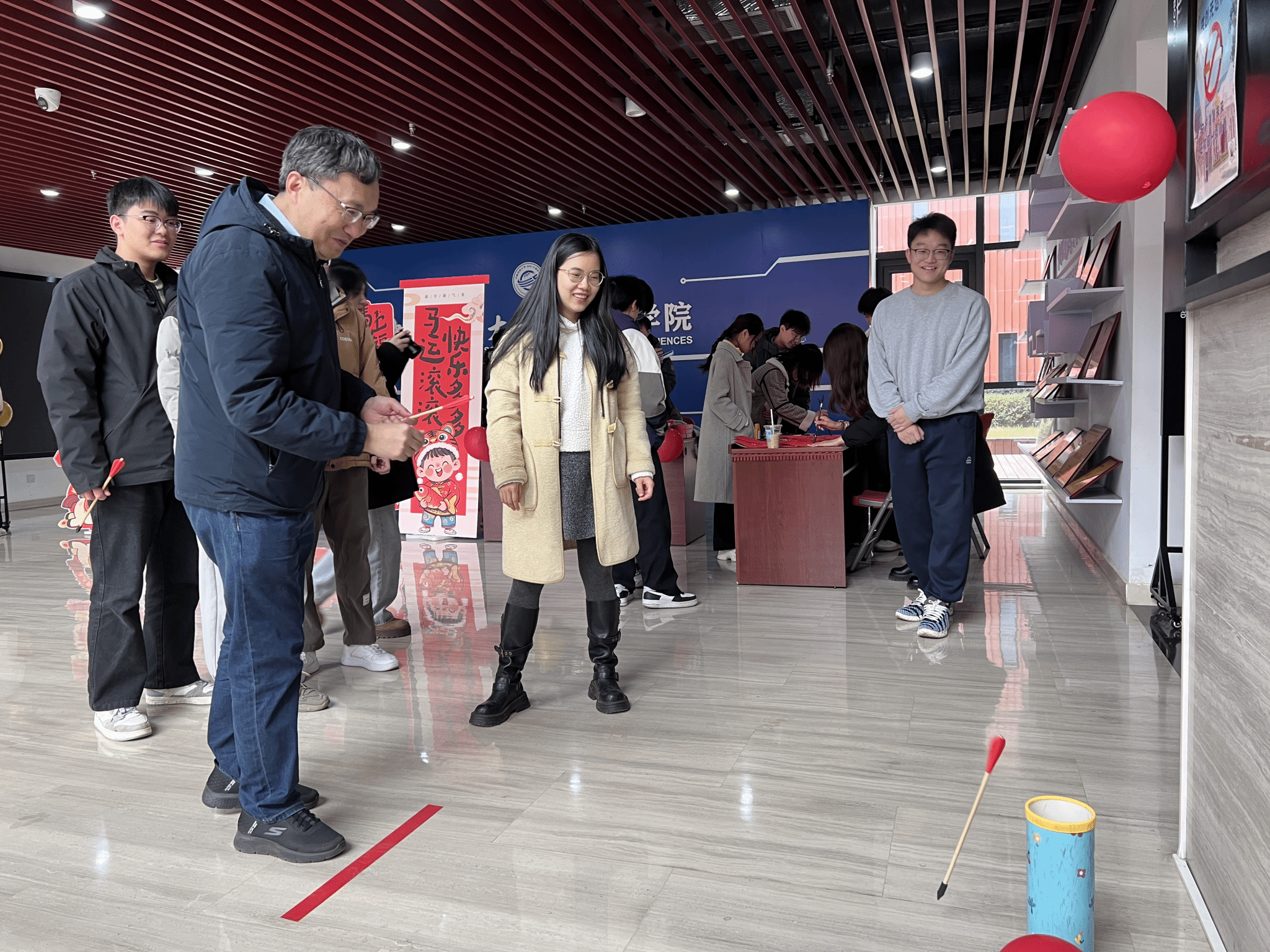书法挥毫、剪纸传情、投壶雅趣、灯谜竞猜、套圈寻乐五大特色活动同步开启,让传统韵味与青春活力碰撞交融,为寒冬校园注入了满满的暖意与喜庆氛围。接下来,就让我们重温这场兼具文化深度与欢乐温度的盛会吧!