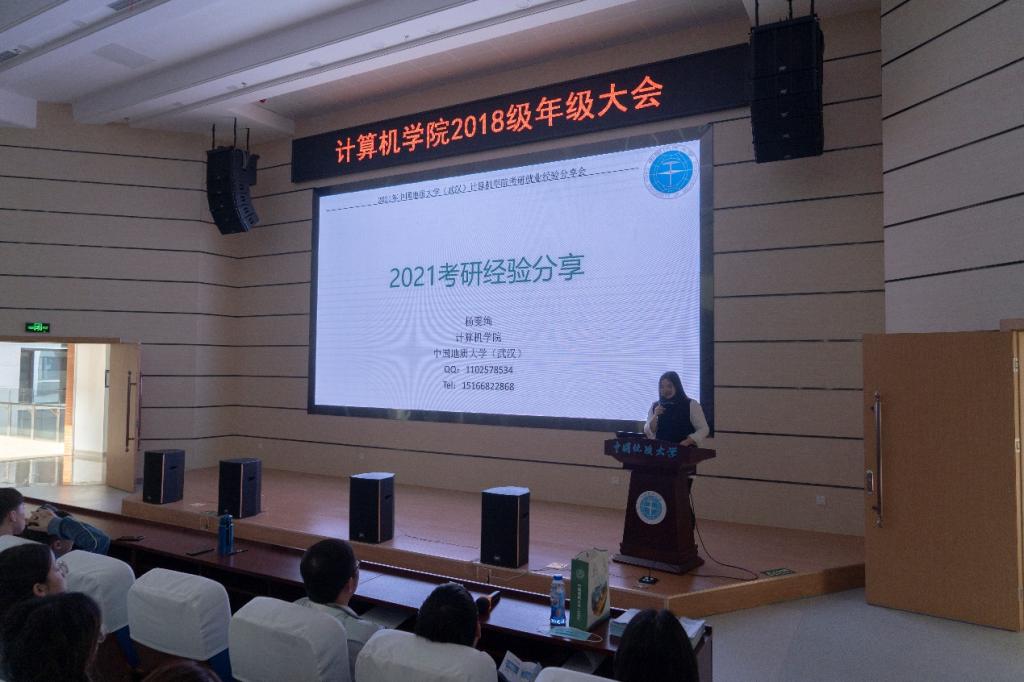 (通讯员:柯天,摄影:雷思奇)4月27日下午,计算机学院2018级本科生年级大会在公教一208教室顺利举行。会议由辅导员王太茂主持,计算机学院党委副书记傅苑受邀参会并做关于毕业去向选择的专业指导,学工组闫维蓉、孙彦钦出席会议。大会还邀请到2017级杨雯绚、郭兴、杨周三位高年级同学结合自己各自的毕业选择为同学们进行分享,2018级全体同学参加此次会议。
