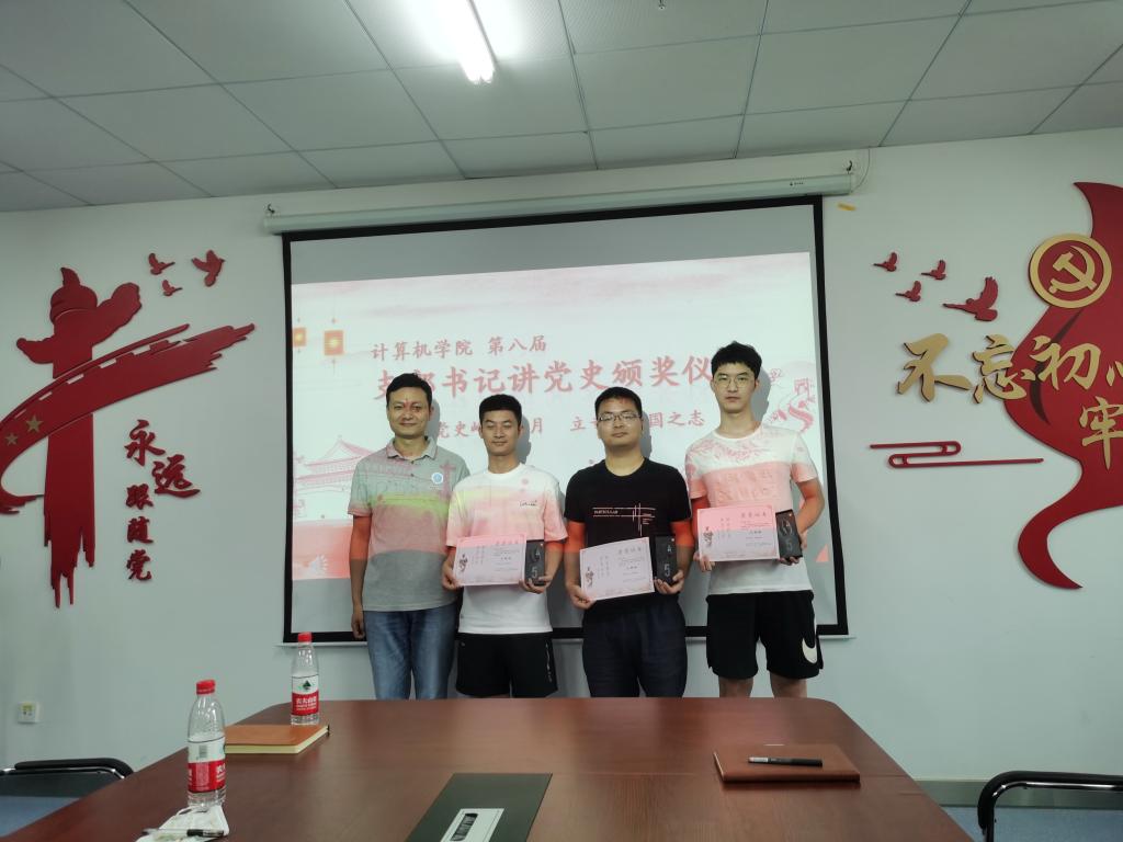 (通讯员:孙彦钦)6月16日下午,支部书记讲党史颁奖仪式于学院楼309会议室隆重举行。学院党委副书记、纪委书记傅苑,学院党委委员、院办公室主任石剑峰,应用系教工党支部书记武云,学院学生党建办公室主任王太茂,获奖党支部书记,毕业生党支部书记参加颁奖仪式。历经月余,计算机学院第八届支部书记讲党史落下帷幕。经初赛遴选、复赛选拔,最终有7名同学斩获奖项。