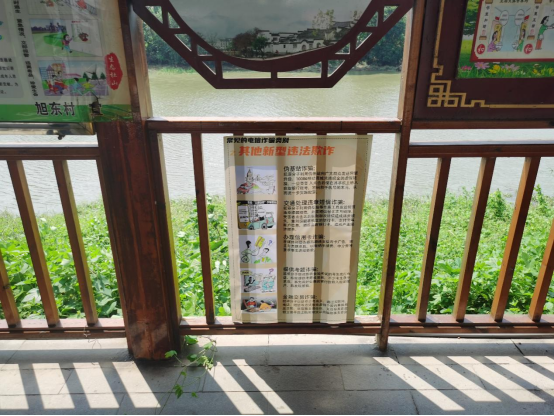 团队成员通过线上搜集资料及实地调研,了解到旭东村在长江流域生态环境治理中突出舆论引导,充分利用广播、微信、标语等群众喜闻乐见、易于接受的方式营造舆论环境。旭东村党支部在杜山集镇和各村人流聚集地、主要路口等位置张贴《鄂州市人民政府关于长港河保护的通告》,进村入户宣传河湖保护并发放《致广大村民的一封信》4600余份,激发广大群众对美好生态环境及生态环境改善后生活质量提升的向往,动员群众支持整治行动、共享整治效果。