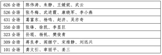 附各会场评委老师名单: