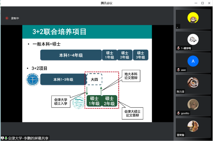 会津大学副教授李鹏具体介绍合作项目的基本情况。他表示,日本会津大学专注于前沿信息科技,拥有国际化的教育和研究环境,大力支持学生创新创业。并从办学学制、申报条件、学费标准、奖学金设置等方面介绍了“3+2”项目的具体内容。