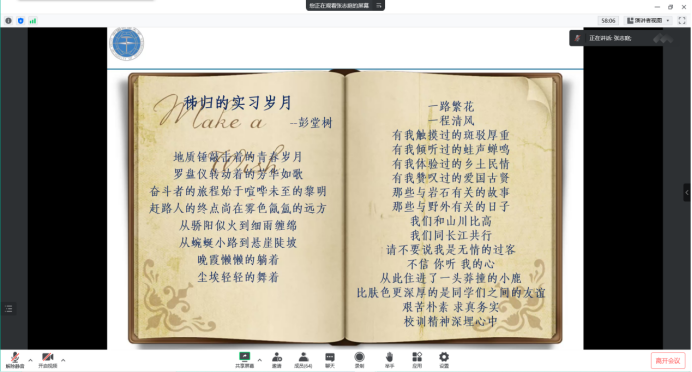 8月18日下午,计算机学院线上召开2022年秭归实习动员大会,学院副院长陈云亮,计算机应用系党支部书记武云,秭归实习队带班老师郭建秋、董玉森,班主任陈晓宇、陈麒玉,辅导员李祥瑞以及空间信息与数字技术专业194201班、194202班全体学生参加此次动员会。秭归实习队负责老师张志庭主持会议。