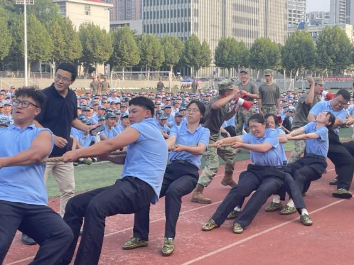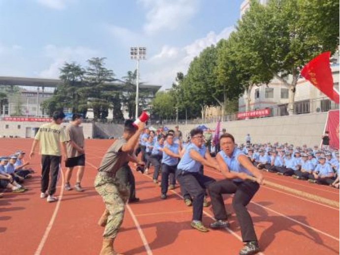 为丰富军训活动,增强学生身体素质,提升各连队凝聚力,发扬团队精神,中国地质大学(武汉)2023级本科生军训拔河比赛在西区田径场举行。21位计科学子自告奋勇代表学院参赛,其余新生作为观众为参赛队员们加油助威。