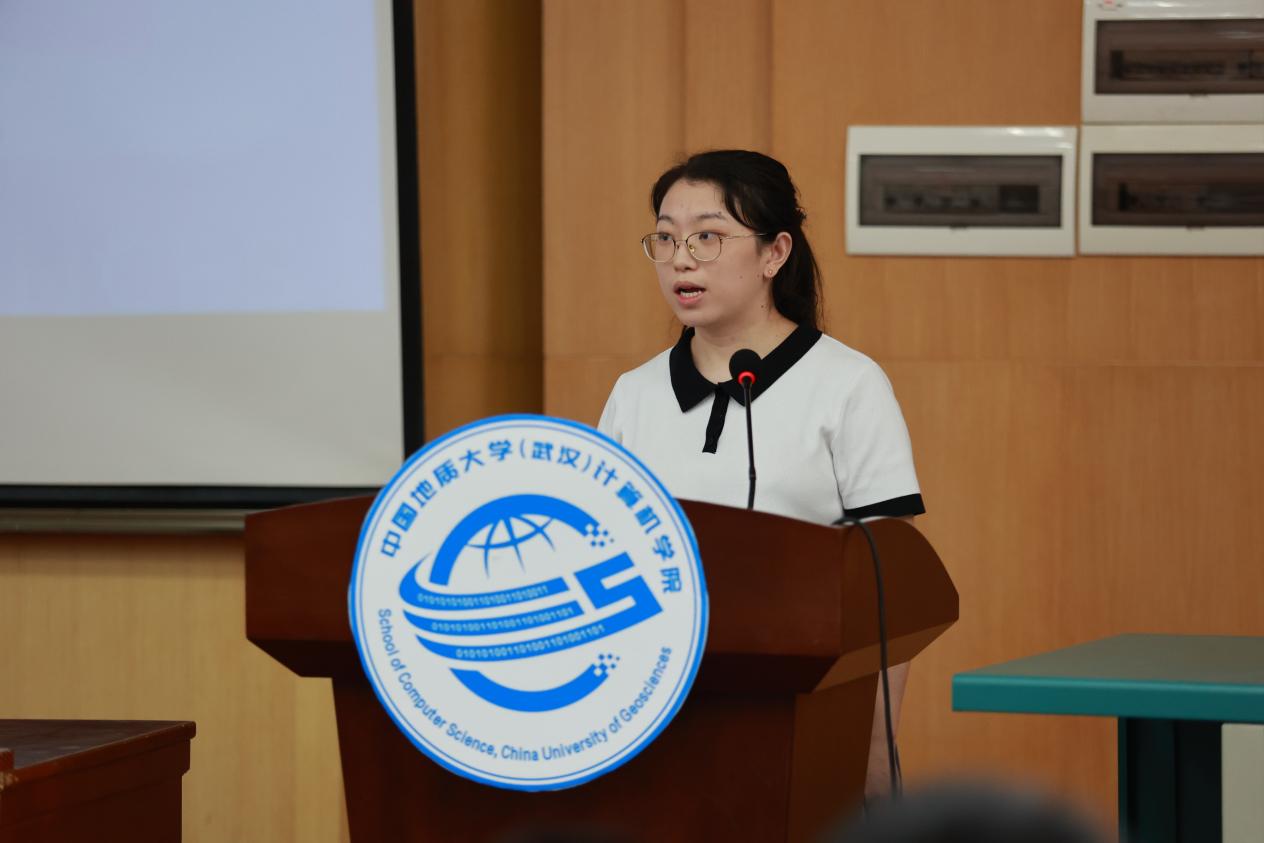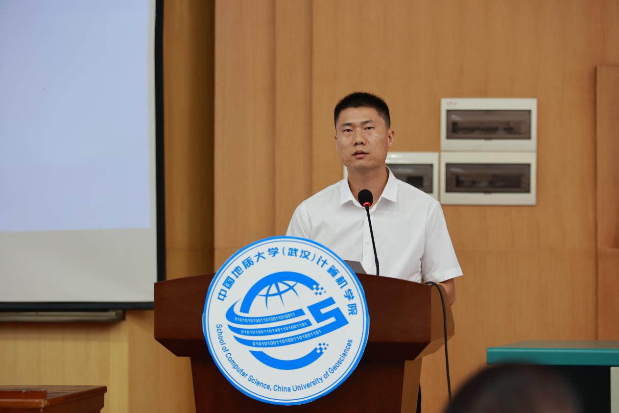 计算机学院党委副书记、院长张洪艳致辞。张院长首先代表全院师生对加入计算机学院的382位本科新生表示热烈的欢迎与衷心的祝贺,他对同学们选择加入计算机大家庭,成为“地大计科人”感到分外欣慰。他希望同学们在未来几年中为自己的选择砥砺耕耘、拔节生长、向阳而生,在地大、在计算机学院留下一生中最为深刻的年轮。同时,他向全体新生提出三点建议:一是要选择肩负使命,心怀国之大者。计科学子要深耕科研土壤,为国家掌握关键性核心技术贡献力量,让青春在实现民族使命中闪耀;二是要选择仰望天空,永攀知识高峰。计科学子要保持对知识的渴望,努力成长为具备计算思维、引领行业发展的交叉学科人才,用广阔的学科视野面对新的挑战;三是选择脚踏实地,练就过硬本领。计科学子要时刻与电脑和网络打交道,在电脑与网络间要学会拒绝诱惑,将时间用在了解行业发展最新前沿,了解市场需求驱动关键技术的突破。