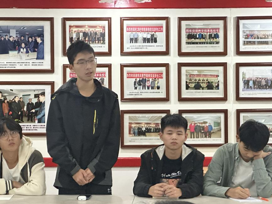 为进一步深化师生之间的互信与合作,倾听学子心声,构建和谐民主的育人环境,促进学生全面发展。学院院领导接待日活动于11月9日在南望山校区成功举办。学院党委书记李国昌、党委副书记林小艳、团委书记王太茂、本科生教学秘书李婷、国际班事务秘书丁雨薇、2023级辅导员闫维蓉、2023级兼职辅导员史莹莹,以及本科新生代表参会。