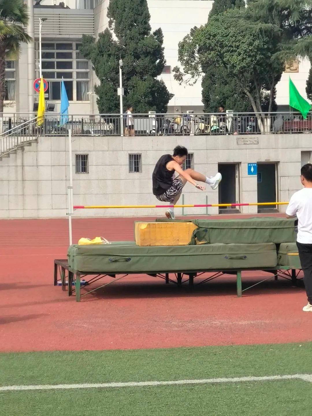 赤红的跑道上,是那一个个破风的身影。他们的眼前是冲刺的终点线,尽管汗水模糊了视线,仍旧奋力冲刺。耳畔是同学们的加油助威,脚下是愈加坚定的步伐。其中,男子组石亮同学斩获400米第二名、800米第三名,女子组李紫晗也获得了400米第四名的好成绩。