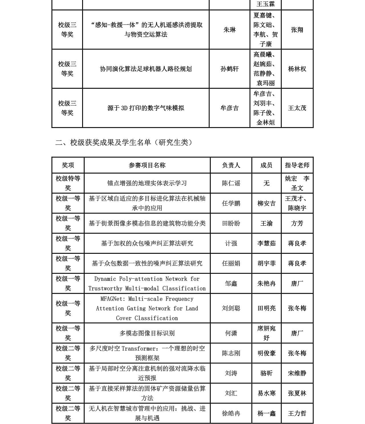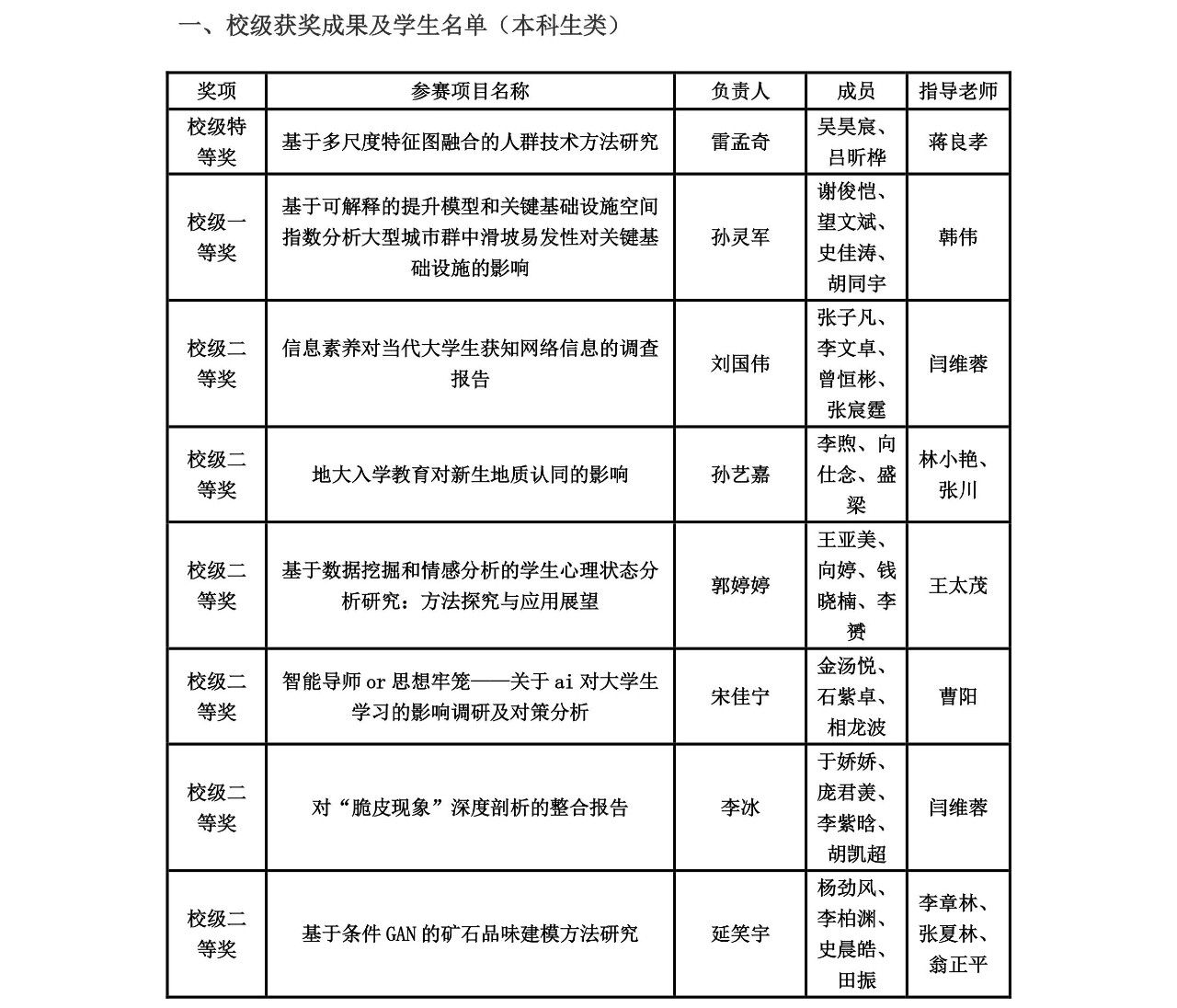 近日,学校第三十四届学生科技论文报告会落下帷幕。在此次科技论文报告会中,学院高度重视,教师积极参与指导,学院团委学生会、研究生会有效组织,我院参赛队伍总计213支,参赛人数与获奖数量均创下历史新高。根据学校相关文件精神,经专家评审,我院共获评校级特等奖2项,校级一等奖8项,校级二等奖26项,校级三等奖36项;王茂才、方芳、蒋良孝、张冬梅、唐厂等5位老师获评优秀指导老师;李欢欢获评优秀工作者;计算机学院获评优秀组织单位。获奖情况见附表。