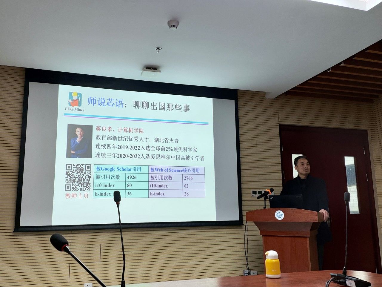 12月9日上午,计算机学院导学沙龙“师说芯语”第二期在学院楼323会议室开讲。本期导学沙龙邀请到了计算机学院蒋良孝教授作为主讲嘉宾,他以“聊聊出国那些事”为题,与同学们分享自己和所指导的5名研究生的出国经历。计算机学院党委副书记林小艳、辅导员谭文博及各年级研究生代表参加活动,计算机学院2023级电子信息硕士研究生刘威炬主持。