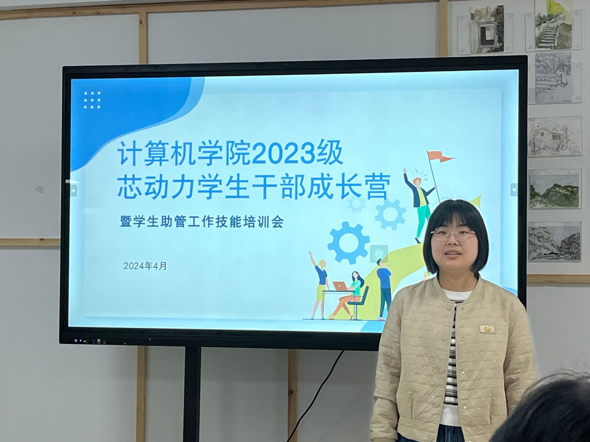 为加强计算机学院2023级学生干部队伍建设,进一步提升学生助管的业务能力和综合素质,更好地为学院师生服务,4月15日下午,计算机学院2023级芯动力学生干部成长营暨学生助管工作技能培训会在一站式学生社区服务中心105顺利召开,2023级辅导员闫维蓉、兼职辅导员史莹莹及助管参加。