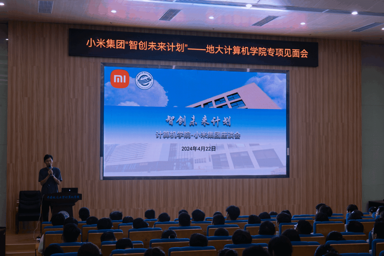 2024年4月22日,计算机学院联合小米集团在学院126报告厅开展“智创未来计划”专项见面会。小米集团技术委武汉研发中心总经理梁荣堂、小米集团技术委武汉研发中心副总经理周代国、小米集团技术委武汉研发中心副总经理王军伟、小米集团技术委武汉研发中心小爱算法团队负责人张帆一行四人参加,学院2021级本科生,2022级研究生400余人参加,专项见面会由计算机学院辅导员谭文博主持。