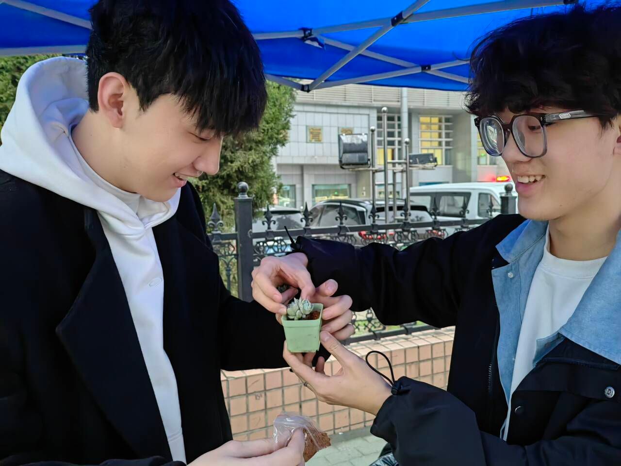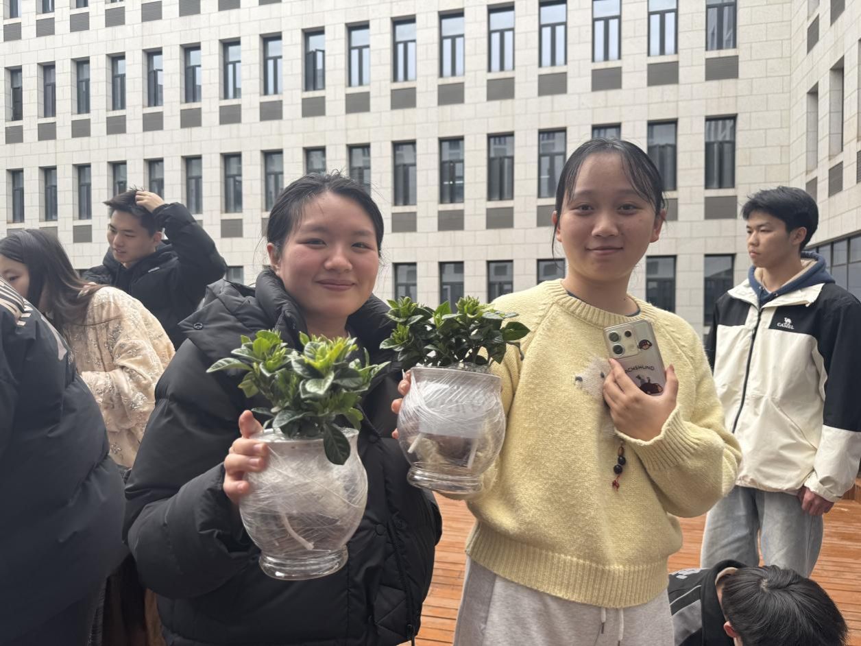 师生们积极参与趣味答题活动,现场气氛热烈。题目涵盖植物的种类、生长习性、生态价值等多个方面,既有简单的科普问题,也有专业知识的探讨,大家通过知识竞答,领取自己心仪的绿植,一株株翠绿欲滴,生机勃勃的绿植瞬间成为同学们的“新宠”。同学们手持绿植开心合影,定格收获的喜悦。