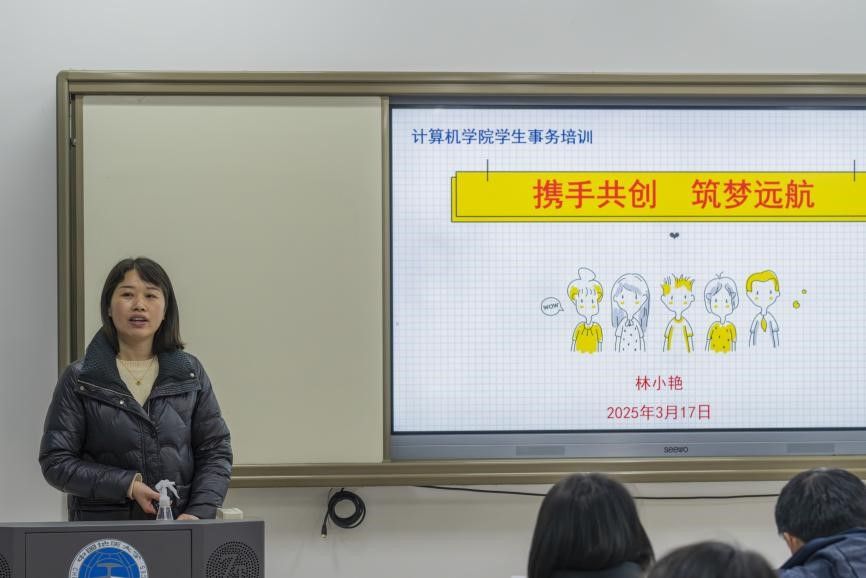 为全面落实共青团中央关于“青年马克思主义者培养工程”的相关要求,紧密结合计算机学院的学科特色和人才培养目标,培养一批有信念、有知识、心怀责任的马克思主义者和团学骨干,3月17日,计算机学院2024-2025学年“青年马克思主义者培养工程”强基班暨“计科领航”团学骨干培训班讲座第一期:《计算机学院学生事务培训》在公教一105教室成功举行。本次讲座中,学院党委副书记林小艳担任主讲人,学院团委书记王太茂、研究生辅导员李欢欢、团委副书记闫维蓉、学生党建办主任谭文博出席本次讲座,学院兼辅、团委学生会、研究生会、党建办学生骨干及本科生、研究生各班班委参与学习。