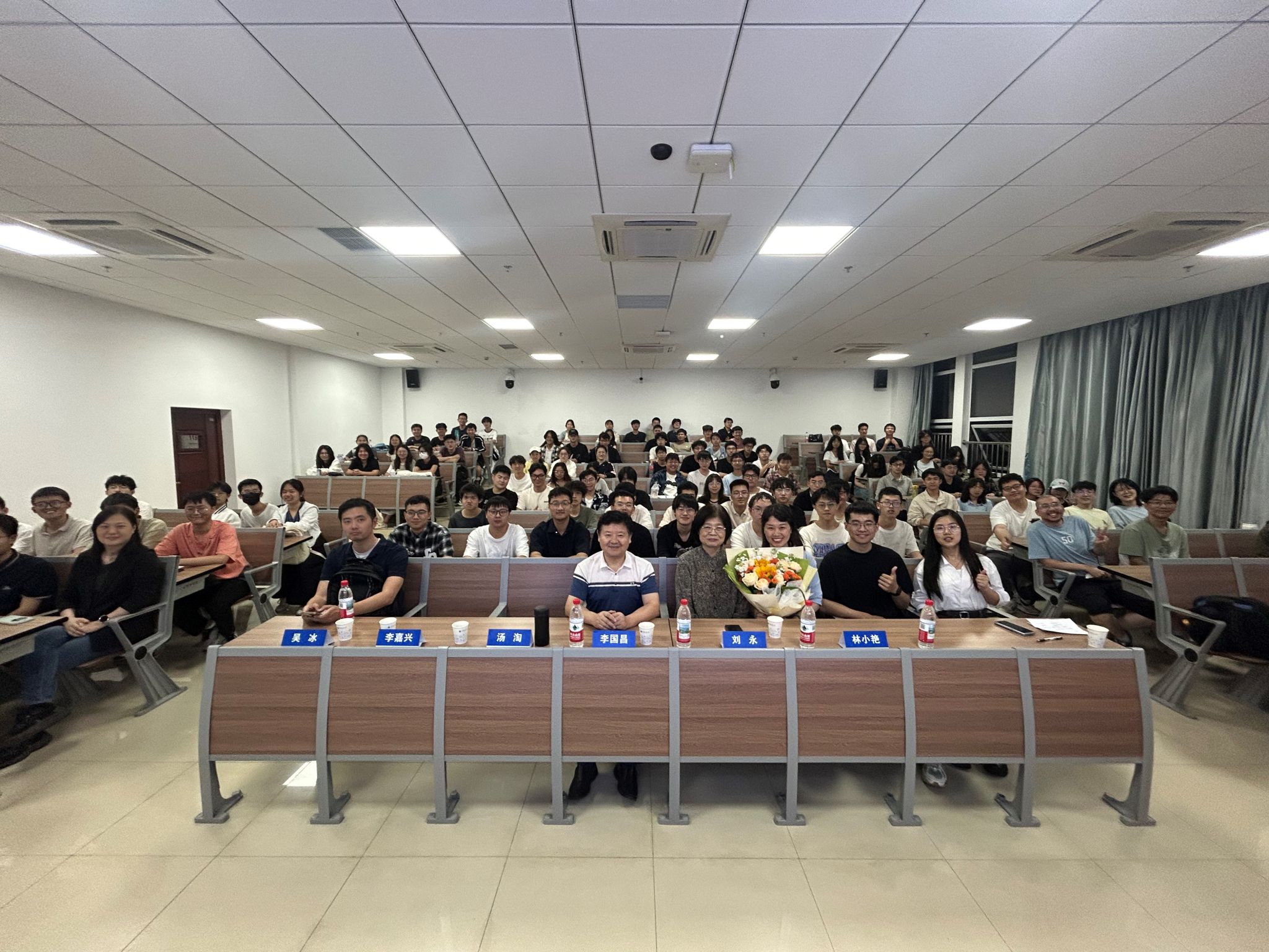 2025年5月15日晚上,学院在南望山校区东区C308教室举办名企领英论坛。本期活动特邀武汉中地数码科技有限公司董事长刘永、石墨文档创始人吴冰作分享,分享主题为“如何确定和实现个人目标”。计算机学院党委书记李国昌、党委副书记林小艳及2024级本科生辅导员丁鑫磊、刘佳丹以及学生代表共同参与了此次活动。