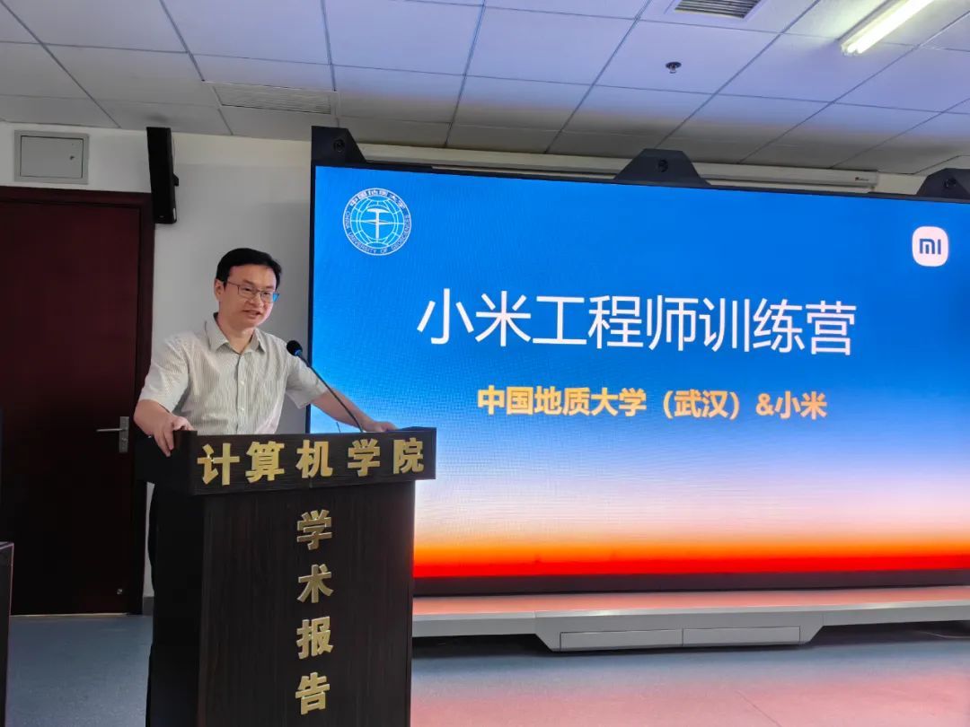 7月3日,中国地质大学(武汉)计算机学院与小米集团联合举办的“2025年中国地质大学(武汉)小米工程师训练营”圆满落幕。小米集团武汉区域总经理王扉、信息技术部武汉研发中心负责人淳刚、技术委武汉研发中心负责人周代国、人力资源部高校关系经理杜娟、人力资源部校园招聘经理云尚磊、武汉工程师训练营助教牟慧仪,中国地质大学(武汉)党委副书记、纪委书记唐忠阳,学生就业指导处处长吴堂高、计算机学院党委副书记林小艳、团委书记王太茂、研究生辅导员李欢欢及全体结业学员参加结营仪式。计算机学院院长张洪艳教授担任主持。