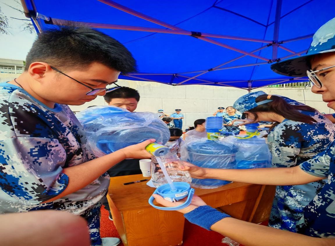 特别令人感动的是,虽然只是预热训练,但计算机学院组建的“代码先锋”军训服务队全程待命。他们穿梭在训练场间,精准调度物资、协助医护保障,就像运行一套精密的操作系统,用实际行动诠释着计科人“严谨务实、团结互助”的专业精神。