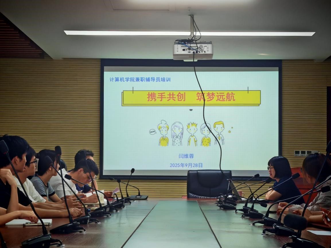 为加强我院兼职辅导员队伍建设,提升其政治素养、业务能力与服务水平,计算机学院于近日组织开展了兼职辅导员培训会。本次培训会围绕“立德树人”根本任务,旨在凝聚育人合力,推进学院学生工作高质量发展。学院团委副书记、2023级辅导员闫维蓉,2025级辅导员谭文博,2024级辅导员刘佳丹和研究生辅导员丁鑫磊出席会议,计算机学院全体兼职辅导员参与会议。