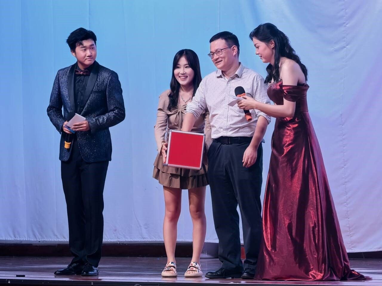 歌声的余韵还在空气中隐隐回荡,灯光便聚焦到了舞台中央,最激动人心的一等奖抽奖环节终于到来。在全场期待的目光中,此次抽奖环节的嘉宾张洪艳院长上台,在同学们的欢呼声中揭晓了今晚一等奖的获得者,将现场氛围推向顶点。