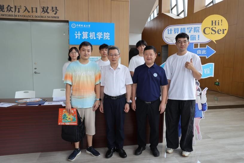 9月1日,计算机学院以蓝白主题迎新打卡墙、3D打印定制姓名铭牌、计科蓝特色文化衫等共同打造科技感迎新场景,“Welcome, new CSer”与代码元素交织。当日恰逢五位新生生日,计算机学院为“寿星”们定制专属生日礼物,让初离家的学子感受到学院的温暖。校院领导亲切走访迎新现场,班主任、辅导员、志愿者穿梭服务,宿舍走访传递关怀,学院用代码书写温情,让每一位新生在秋日地大启航新程。