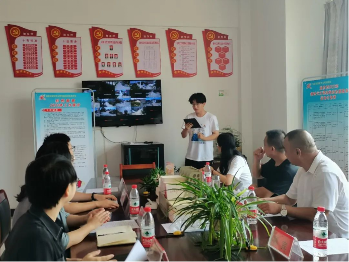 “筑梦E路人”社会实践团团长赵飞越进行总结汇报。实践团成员积极走进基层,了解乡村建设、服务乡村振兴,在系列活动中深入了解并亲身感受乡村振兴的工作进程,充分利用专业优势,将所掌握的知识技能与社会实践有效结合。同时详细介绍实践团探寻乡村足迹、汲取乡村文化、立足乡村生态、融合专业优势的学习实践路程,详细汇报实践团开展各项活动的具体情况。